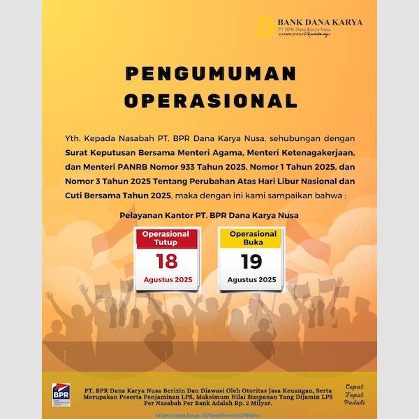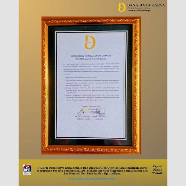PT. BPR Dana Karya Nusa Berizin Dan Diawasi Oleh Otoritas Jasa Keuangan