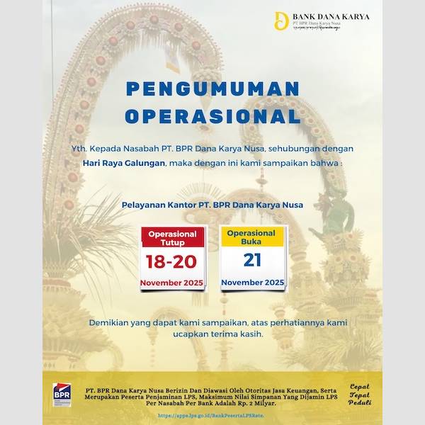 Pengumuman, Hari Raya Galungan & Kuningan Bank Dana Karya
